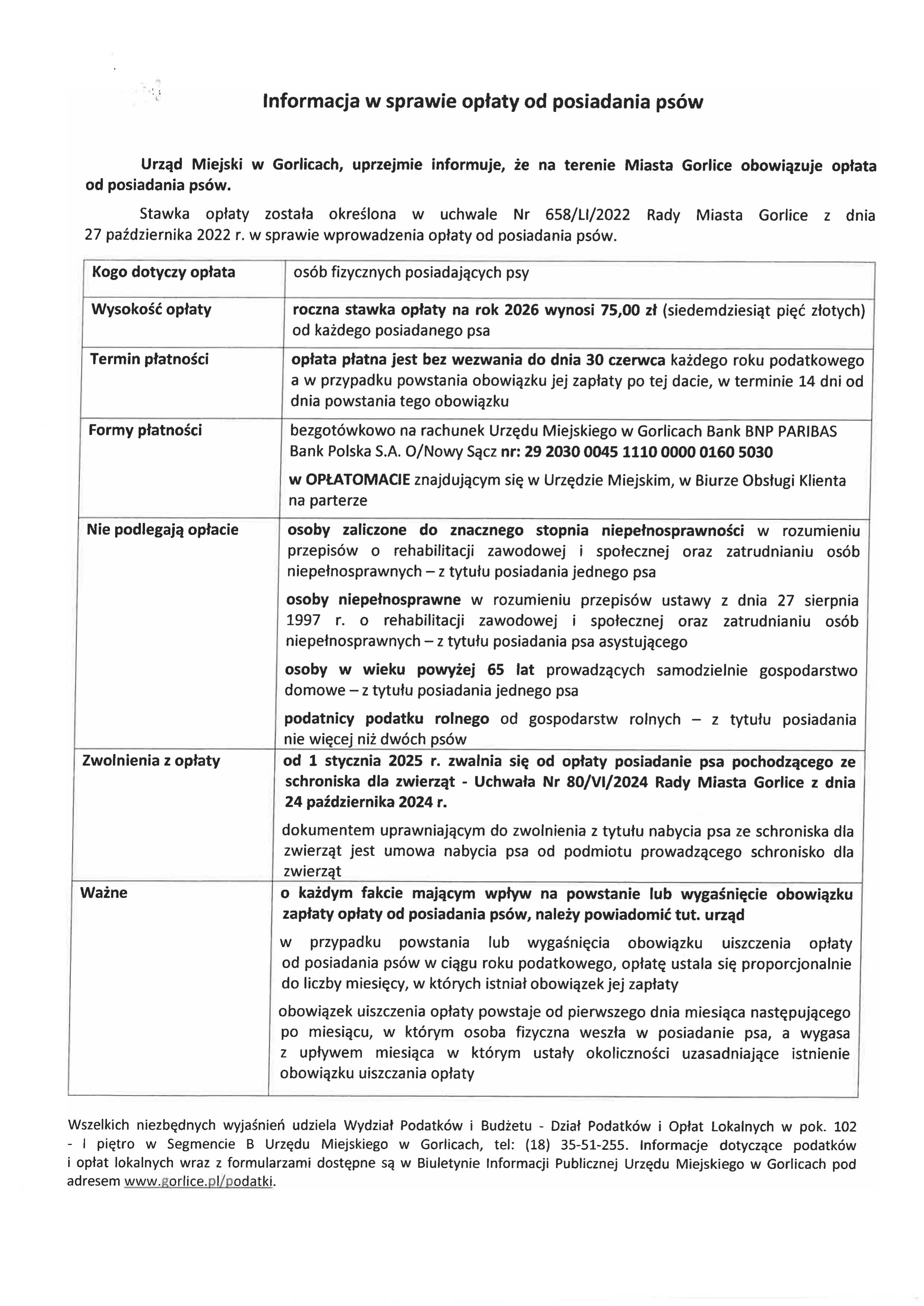 Informacja w sprawie opłaty od posiadania psów.