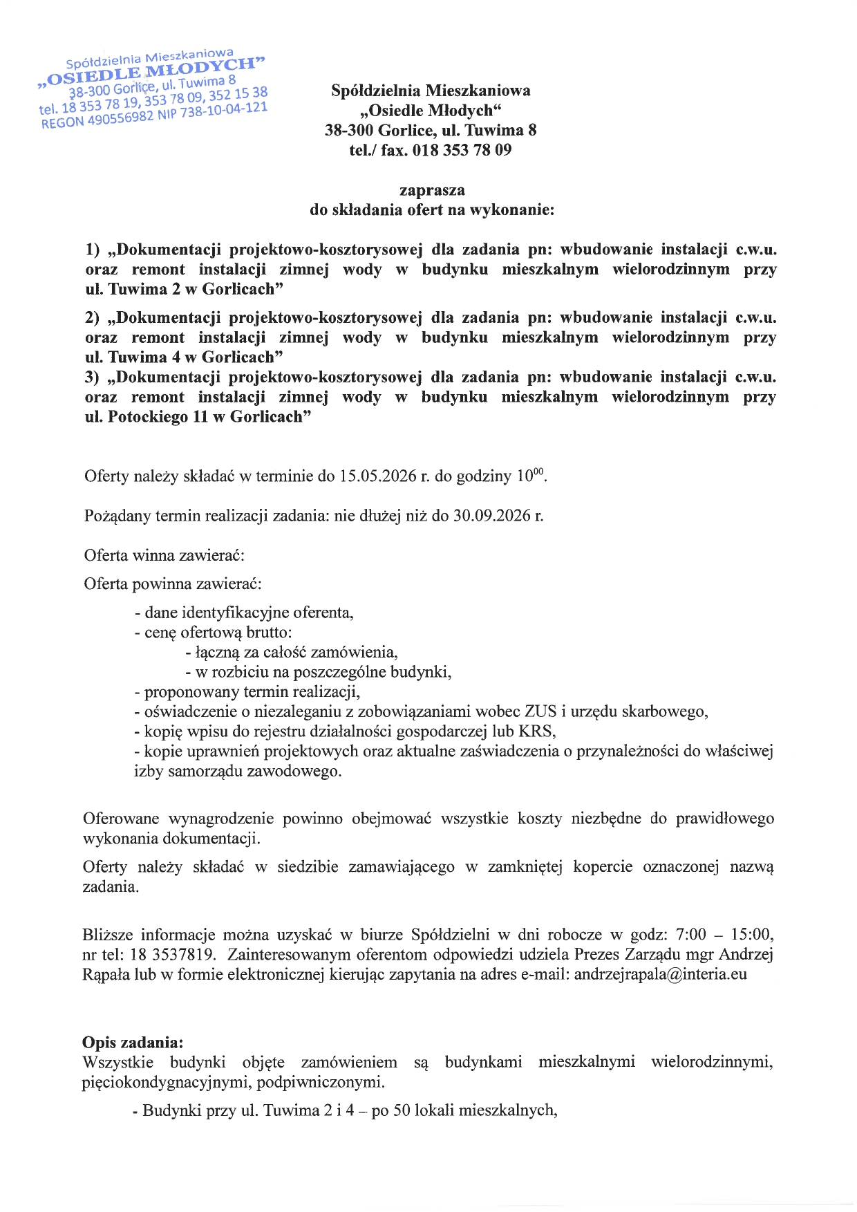 Zaproszenie do składania ofert (dokumentacja projektowa)